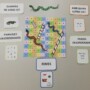En este material podéis poner las escaleras y las serpientes donde vosotros queráis porque podréis cambiarlas en las sesiones para que cada vez el juego sea diferente. Del mismo modo que el tablero tiene diferentes colores que corresponden a los ejercicios que el paciente, en este caso debe realizar.